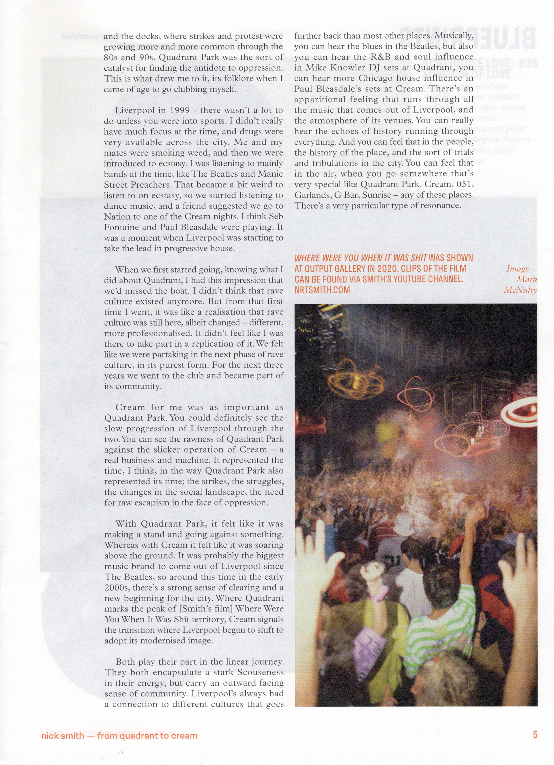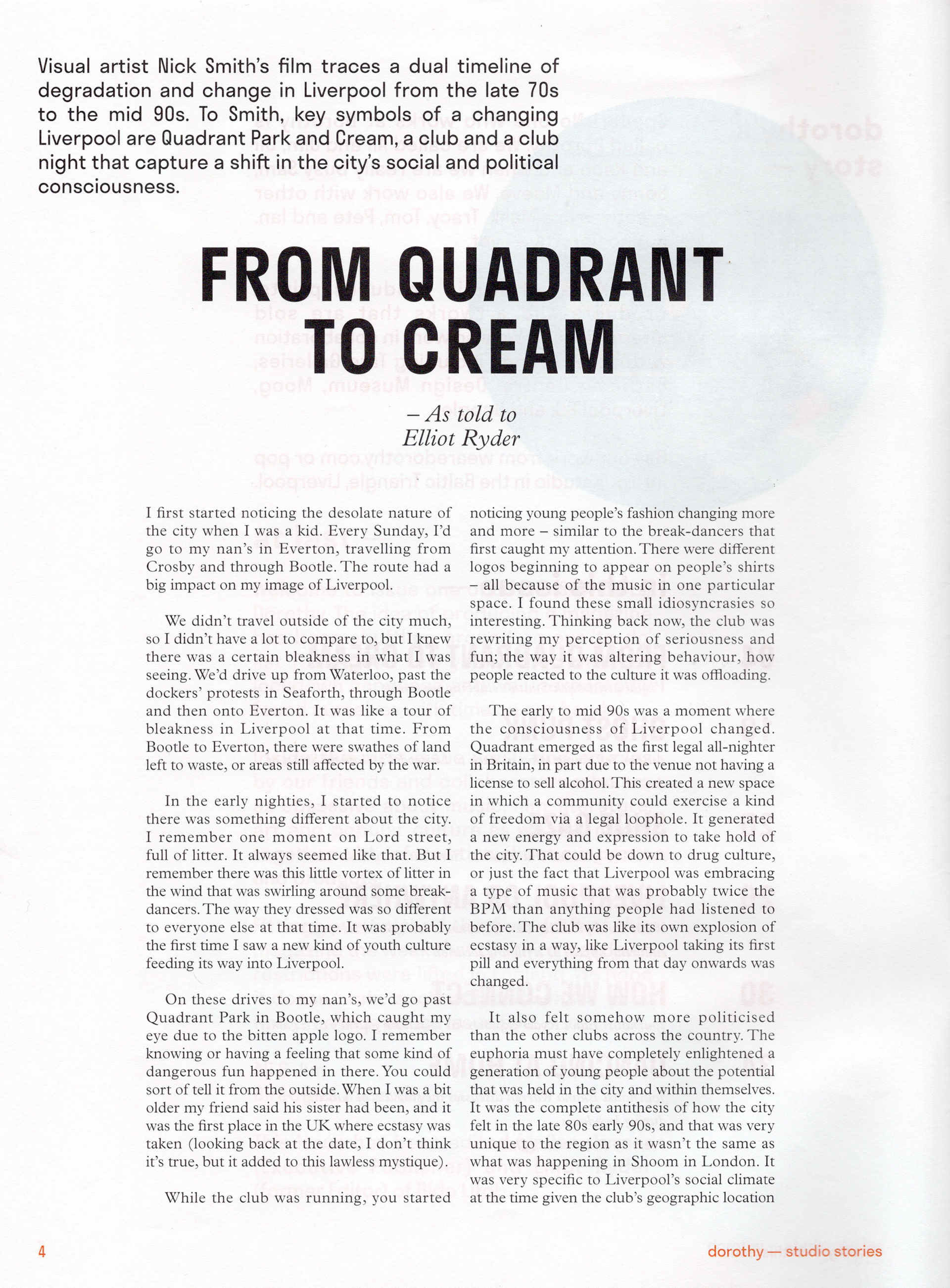 A conversation with Elliot Ryder discussing urban and social change via two clubs in Liverpool, Quadrant Park & CREAM.