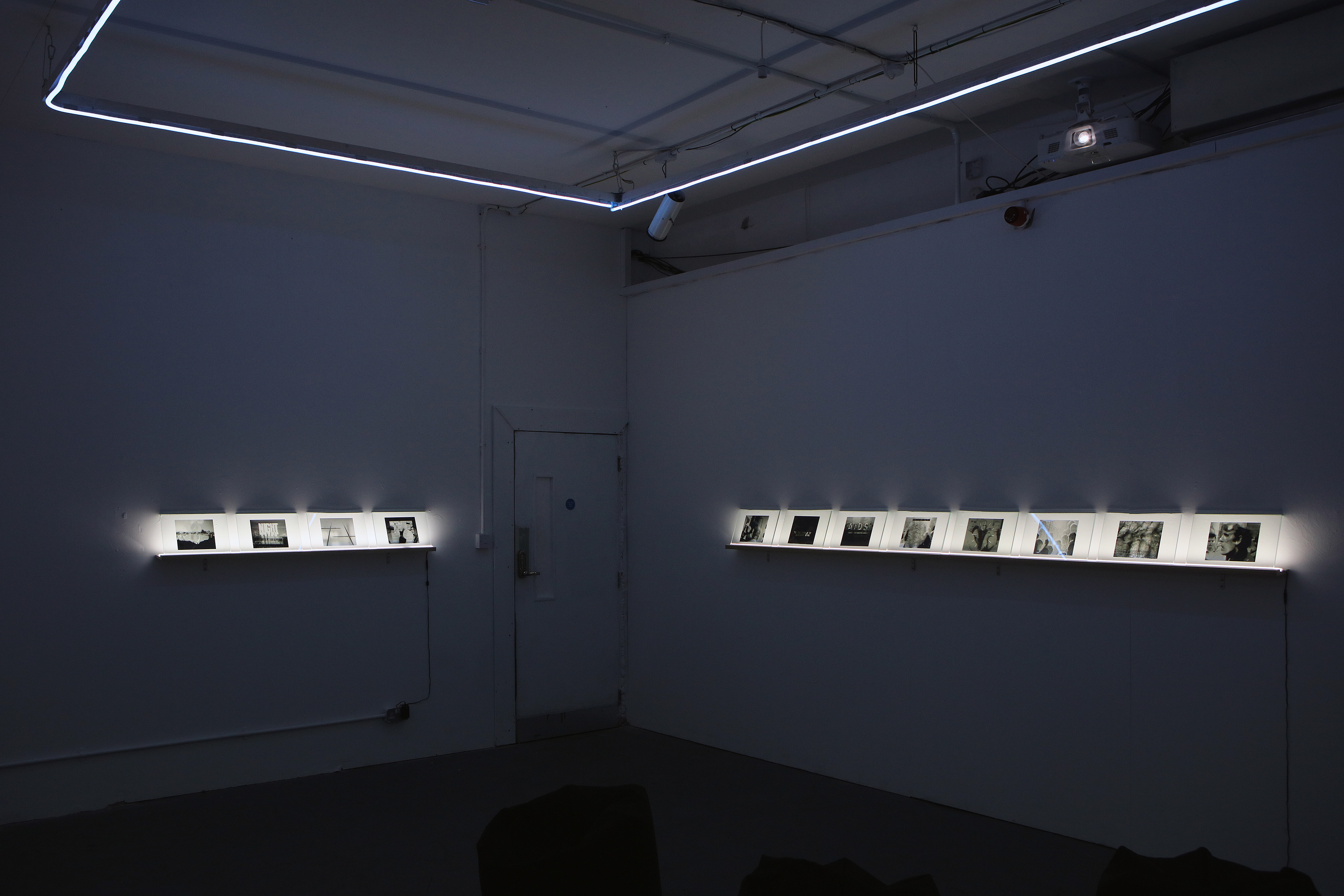 A photographic work comprising twelve images made from layered “offcuts” of found footage relating to the North West of England, combined with Smith’s own photographs. The source images are printed onto film and overlaid in two layers, held in place between glass.