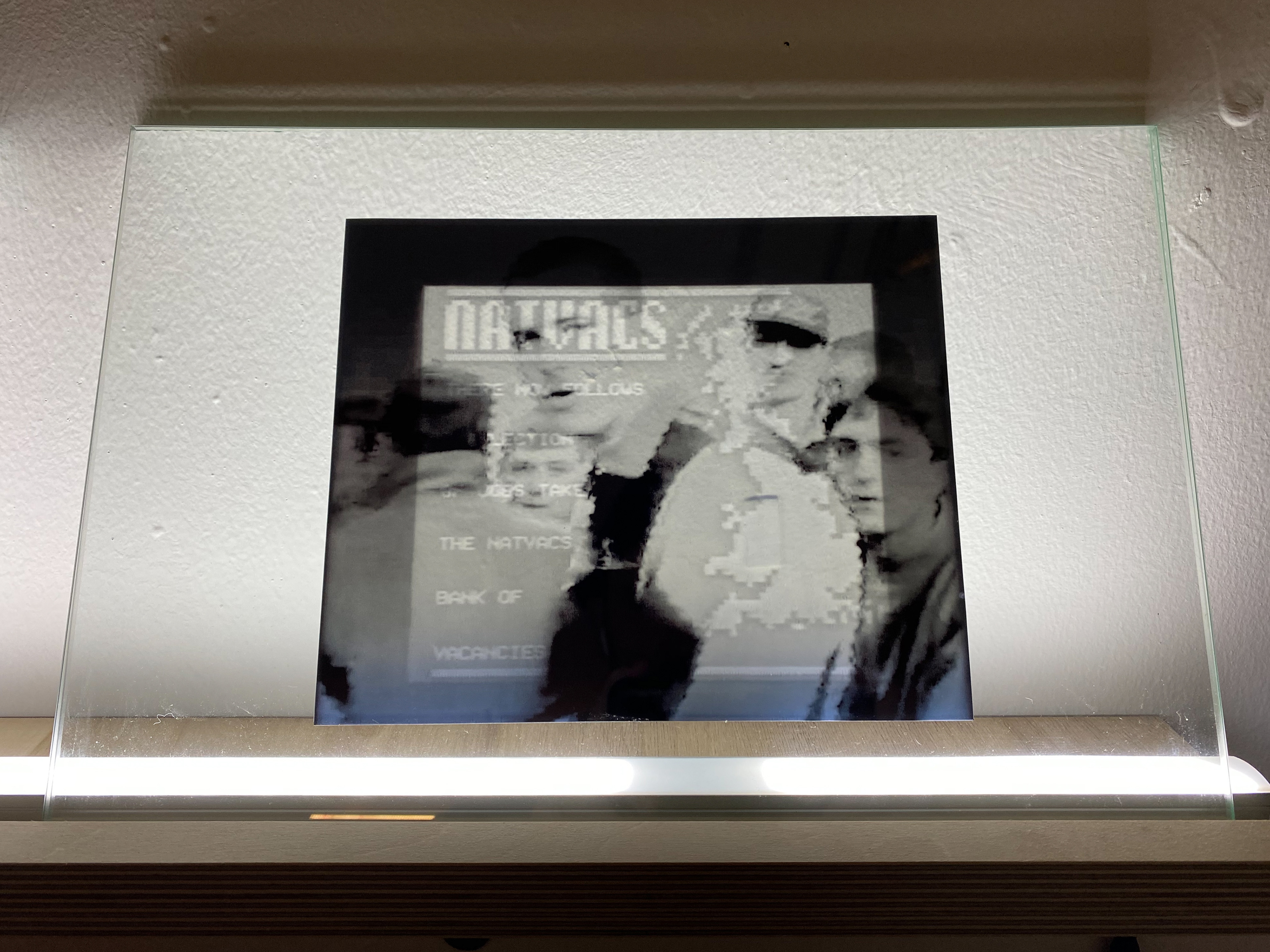 Each work carries the atmosphere of a particular period in the region during Smith’s upbringing. The film is formatted in a 4:3 ratio, while the glass is 16:9, so the past is literally framed by the present. The resulting images register memory as fragmentary and brittle, while also touching on broader political and celebratory narratives embedded in the region.